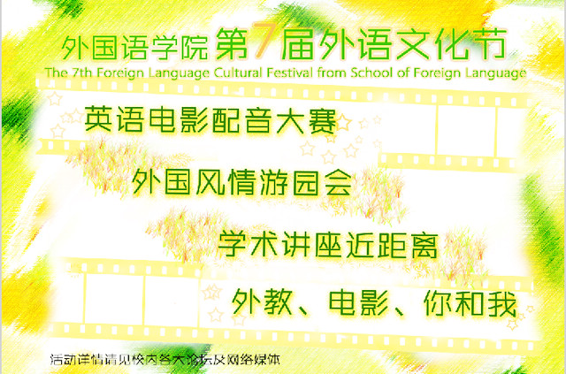 除了外语文化风情游园会活动外,本届外国语学院外语文化节还举办了丰富多彩的其他活动,如外文电影欣赏、英文电影配音大赛和学术讲座活动。活动覆盖面广,得到了中关村校区和良乡校区广大同学的积极参与。在长达一个多月的时间里,本届外语文化节活动给北理工带来了一股强劲的外语风。