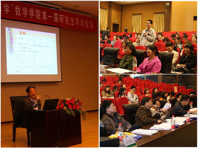 为给广大数学学院的研究生提供一个高水平的学术交流平台,拓宽研究生的学术视野,活跃学术思想,促进学术争鸣,激励学术创新;更为了响应我校进一步加强理科教育和研究的政策,在研究生工作处(部)和学院领导的支持下,数学学院研工委、研究生会组织开展数学学院第一届研究生学术论坛。