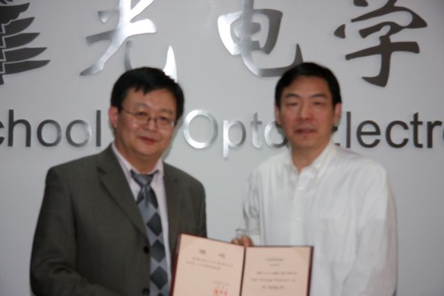 2012年4月16日下午,德赢AC米兰官网在信息教学楼2层会议室举行兼职教授聘任仪式,聘请英国剑桥大学初大平教授为我校兼职教授。光电学院院长魏平代表学校向初大平教授颁发了聘书。聘任仪式由光电学院光电信息技术与颜色工程研究所刘越所长主持。