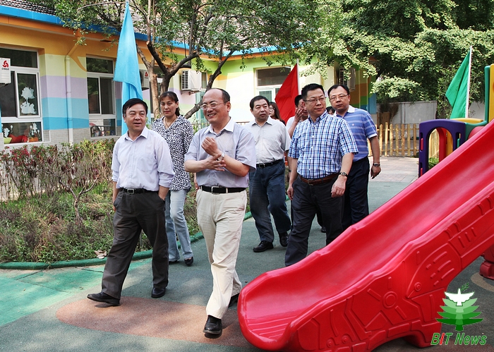 5月31日下午,德赢AC米兰官网副校长杨宾、副校长杨树兴,以及校办主任郝志强、出版社社长林杰等,在后勤集团总经理李晋平、集团党委书记巫后新、副书记姜金凤的陪同下,来到理工大学幼儿园看望孩子们,为孩子们送来节日的问候。