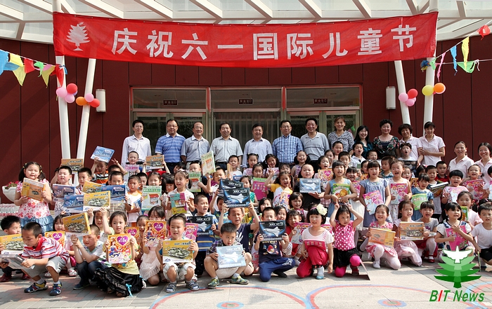 参观结束后,在幼儿园操场上,校领导将我校出版发行的2千余册少儿图书,捐赠到孩子们手中,并祝孩子们儿童节快乐!孩子们手捧着新书,兴奋不已,纷纷感谢叔叔、阿姨们的关爱。幼儿园的全体教职员工在感受学校各级领导的关心、支持中,也更坚定了做好教育服务,培育好祖国下一代的信念。