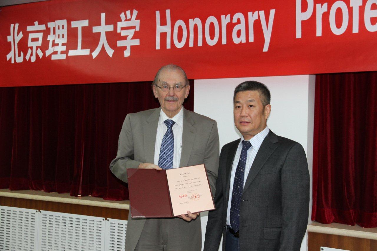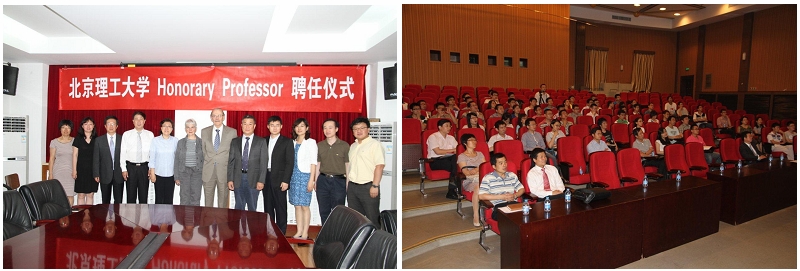6月16日上午,我校举行了Jan D. Achenbach院士Honorary Professor聘任仪式。副校长赵长禄、人事处副处长陈珂、国际交流合作处副处长高珊、机械与车辆学院院长项昌乐、副院长左正兴、机电学院书记栗萍及检测与控制研究所徐春广教授、Achenbach夫人等出席了受聘仪式。赵长禄副校长向Achenbach教授颁发聘书,并赠送了纪念品。赵长禄副校长对Achenbach教授在力学及无损检测领域的卓越成就表示高度肯定,并希望他能够给予我校更多的建议与帮助。Achenbach教授表示很荣幸成为北理工的荣誉教授,并表示愿意在北理工迈向世界一流大学的进程中给予支持。聘任仪式后,Achenbach教授为北理工师生发表了精彩的学术讲座并与师生开展了热烈的学术交流。