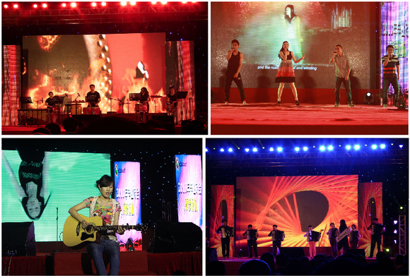 歌曲联唱《致青春》,由即将毕业的校园歌手们联袂演绎了09年到现在最受大学生推崇的几部影视作品的主题曲,演唱的过程中,大屏幕上滚动播出的通过网络征集的学生照片,引发了大家的强烈共鸣,也勾起了大家对于大学时光的留恋。