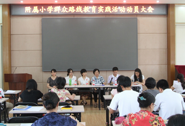 李振江代表附属小学就切实开展好这次教育实践活动做了动员,要求全体党员要深入学习和深刻领会中央指示精神,集中解决“四风”为主要任务,以“照镜子、正衣冠、洗洗澡、治治病”为总要求,党员领导干部和全体党员务必以身作则,严格执行中央提出的基本规定动作,为实现“四个进一步”的目标以及“为民务实清廉”的价值追求而不懈努力,扎实有效地完成此次教育实践活动任务。会议最后部署了群众路线教育实践活动的实施方案,要求全体党员以此群众路线教育实践活动为契机,提升附小的教育教学质量,办老师、学生和家长满意的小学。