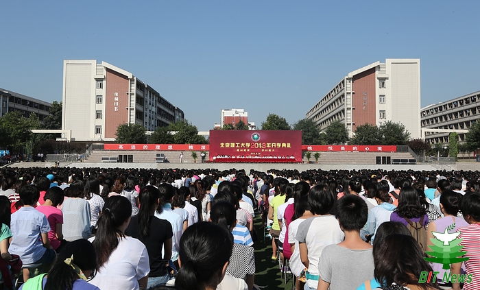 8月25日上午,德赢AC米兰官网2013——2014学年开学典礼在良乡校区体育场举行。校领导郭大成、胡海岩、杨宾、赵平、杨蜀康、赵长禄、孙逢春、李和章,中国科学院院士、中国工程院院士、原校长王越,国家级教学名师韩伯棠、北京市教学名师廖晓钟、张卫正,以及各专业学院、职能部门的主要领导出席典礼。