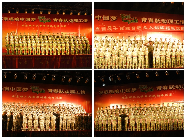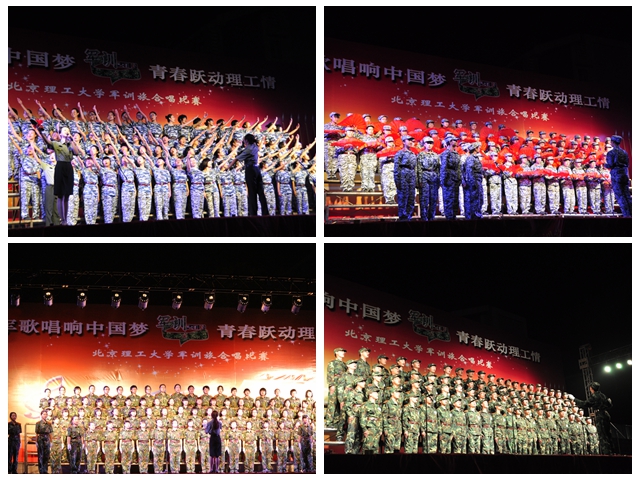 合唱比赛过程精彩纷呈,高潮迭起,时而激情澎湃,时而婉转悠长,伴随着优美的旋律,他们歌颂祖国,歌唱青春。各营的合唱都融合了独具特色的表演:热血男儿的诗朗诵,绿装红颜的乐器表演,精心排练的动作都展现了北理工学子的青春风貌。