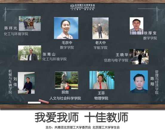 5月23日,在中关村的唯实报告厅与良乡的理教204分别进行了“我爱我师”中关村与良乡校区的评选大会。中关村各学院选派了15名学生代表;良乡校区各学部选派30名学生代表,各学院选派10名学生代表参加了投票。到场的学生代表都领到了竞选老师的宣传册,经过认真地了解与激烈的讨论,代表们为最喜爱的老师投上了深情的的一票。通过综合场投票结果和网络的投票数据,最终十位老师获得第八届“我爱我师”评选活动中“最喜爱的老师”的称号:老大中老师、张青山老师、刘佳老师、陈祥光老师、陈翔老师、毛京中老师、王晓华老师、王菲老师、脱傲老师、徐厚宝老师。