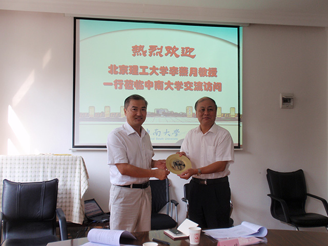 校长助理李燕月代表学校向中南大学常务副校长黄健柏赠送了纪念品。