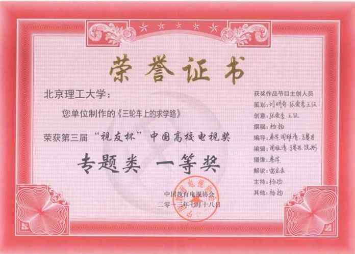 栏目类 优秀奖:《畅谈理想 提醒幸福》 策划:学生工作处 党委宣传部 制作:党委宣传部(学校电视台)web.bit.edu.cn/pub/bittv/jpjt/26022.htm