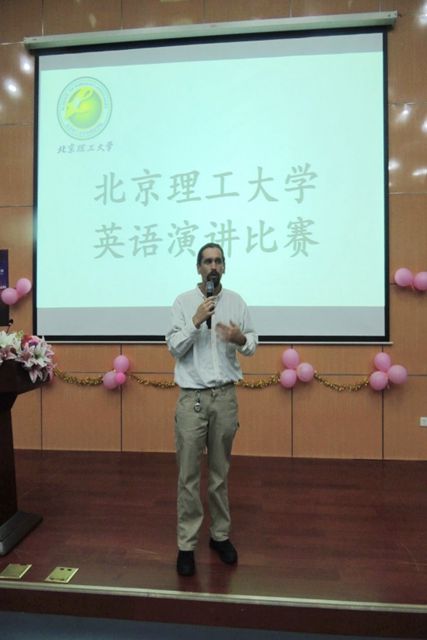 比赛的最后,外籍专家Brewer进行了精彩点评,对于与大家共度这样一个美好的夜晚,他感到非常荣幸!对于选手们的表现给予充分肯定,分享了自己在大学第一次上台演讲的故事,同时鼓励同学们应该积极参加实践活动,他对同学们提高英语表达能力充满信心!