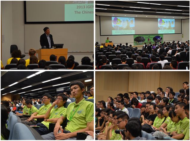 5日上午9时许,开幕式在康本学术科技园一号报告厅举行,随着比赛鸣笛响起,本次大赛正式开幕。BIT、BIT-China代表队参赛项目分别为《A New Strategy to Detect Antibiotics in Milk: Based on Sensors with Controllable Bio-enhanced Blocks》、《Intelligent Microbial Heat Regulation Engine》。在比赛前,两支队伍通过长达6个月的不懈努力和充分准备,均取得了可喜的科研成绩,为本次参赛打下基础。BIT队伍的参赛项目是通过基本构建一套完整的生物检测系统,配合队员设计的小型化手持式荧光酶标仪,第一次尝试实现了将抗生素检测带出实验室的创举,为微生物抗药性问题的解决作出贡献。BIT-China队伍则通过设计自主耐热和数量调控基因线路及与底盘宿主的适配性研究拓宽了工程菌的最适温度范围,可智能地调节发酵产热,从而大大降低了微生物反应过程中的水电成本,达到了节能降耗和二氧化碳减排的效果,为绿色地球贡献力量。在PPT展示环节中,两支队伍以新颖的想法、娴熟的英语、自信的表现赢得了评委们的一致好评。在随后的提问环节中,队员们认真聆听评审老师的疑问,进行深入的思考,以简洁清晰的回答赢得了阵阵掌声。