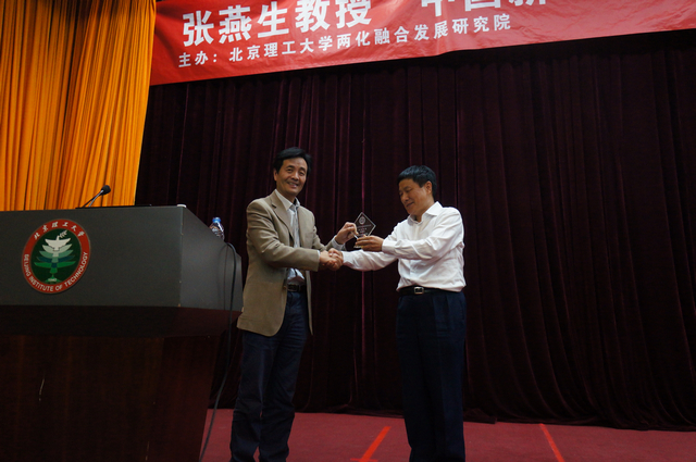 报告会后,管理与经济学院院长魏一鸣教授与张燕生教授进行了简短的交流。