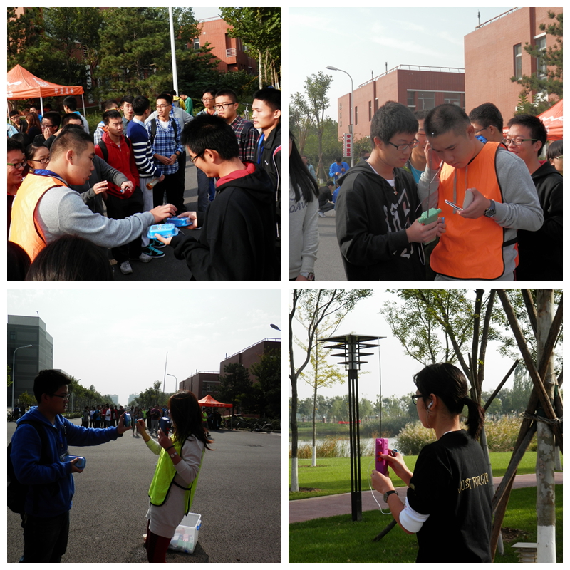 随后,在热烈的掌声与欢呼声中,“无线电测向大赛”正式开始了。本次比赛采取每4人一组,进行接力寻找电台的规则,每组队长在开始前临时获取本组所需找寻的电台编号,每人找寻一台,接力进行,用时最短者获胜。