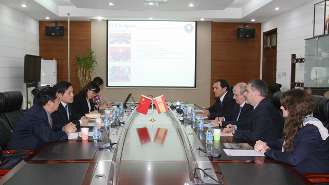 一一胡海岩校长向Conde校长在任职后首访北理工表示欢迎。胡校长简要回顾了北理工与西班牙高校及企业间的合作交流,尤其是与马德里理工在学生交换、教师交流方面的密切合作。他表示,由两校于2009年共同发起成立的“中国-西班牙大学联盟”不仅促进了中西两国高校间的合作,也促进了北理工与西班牙语国家高校间的进一步交流,学校希望继续与马德里理工大学保持紧密的合作关系,并继续推动联盟间高校以及与西班牙语国家高校间的交流与合作。