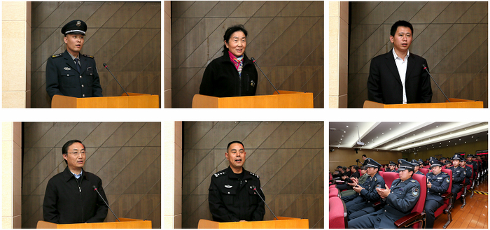 与会的各位北理工安保思想疏导师、王庚同志,林永强同志,范友联同志,分别为获奖保安员进行颁奖;徐欣庆同志,朱益生同志分别代表公安系统为两名同学进行颁奖。