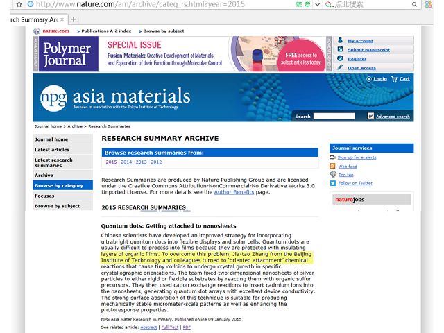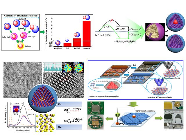 张加涛课题组一直在此领域开展研究,攻克了一个又一个难关。在前期工作的基础之上(Nature, 2010, 466, 91;Science, 2010, 327, 1634),在大晶格失配度金属/半导体异质纳米晶的精确调控及光催化性能方面,取得突破,发表在顶尖材料类杂志Adv. Mater. (IF=15.41)上;在此类量子点材料的取向连生组装、大面积成膜及柔性光伏、电子器件方面的研究发表在顶尖材料杂志NPG Asia Materials(Nature子刊, IF=9.9)上;首次利用不同膦配体引发的离子交换反应实现此类异质结构的更多、更精细的结构及光学性质调控,相关研究成果被Angew. Chem. Int. Ed.(德国应用化学,化学领域顶级国际学术期刊,IF=11.3)接收发表。利用全新的离子交换反应方法,实现了半导体纳米晶中异价金属离子的掺杂、掺杂发光以及电子掺杂能级(p型、n型)的精确调控,这部分研究成果被顶尖材料类杂志Adv. Mater.(IF=15.41)接收发表。最近在光催化材料(产氢效率达到24mmol/g/h)、光热材料及生物应用等领域也有新的突破。Nature 网站对我们的工作给予专题报道。