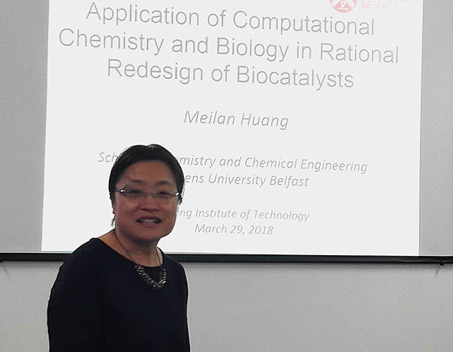 应德赢AC米兰官网化学与化工学院邀请,英国贝尔法斯特女王大学黄美兰博士于3月29日下午来到德赢AC米兰官网化学与化工学院,为北理工师生带来题为 “The application of computational chemistry and biology in rational redesign of biocatalysts” 的学术报告。生化工程系的李春教授主持了本次学术报告会,化学与化工学院教师及研究生四十余人参加了报告会。