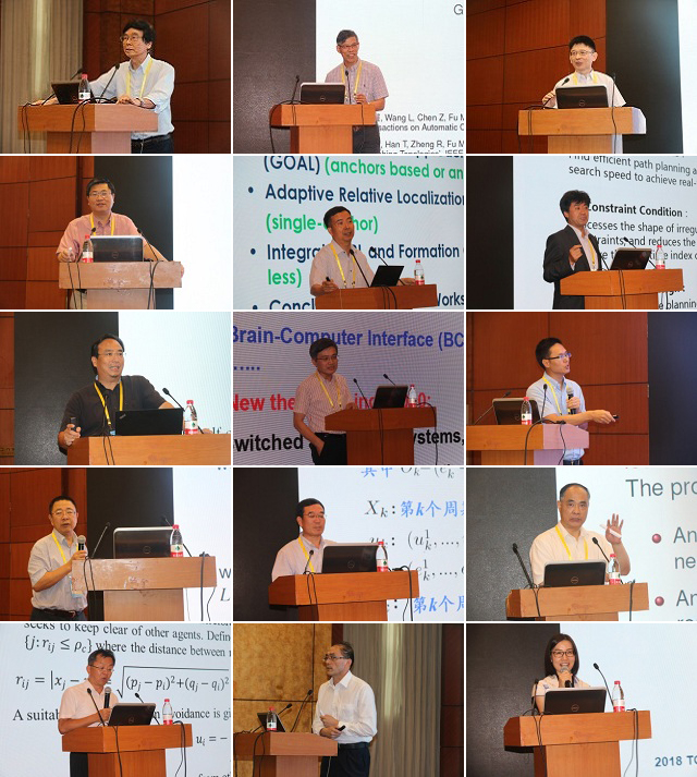 此次研讨会共邀请到1位美国工程院院士、中国科学院外籍院士做特邀报告,14位多智能体系统领域的国际知名专家、学者作大会报告,其中IEEE Fellow 14位,IFAC Fellow 7位。此次研讨会为与会人员奉献了15场精彩纷呈的学术报告,涵盖多智能体系统领域的多个方面,包括群集控制、一致性问题、输出调节、协同动态规划等。香港中文大学C.P. Wong教授介绍了纳米材料与技术的最新进展及其在电子、光电子、自动控制系统中的应用。澳大利亚纽卡斯尔大学Minyue Fu教授介绍了一种基于复值拉普拉斯矩阵的多智能体系统可变尺寸编队控制方法。香港城市大学Gang Feng教授分析了具有无限通讯时滞的多智能体系统一致性问题并提出一种低增益控制方法。美国弗吉尼亚大学Zongli Lin教授对具有执行器饱和的单个体系统及多智能体系统的控制问题进行了全面、深入的分析与总结。南洋理工大学Lihua Xie教授介绍了在GPS失效情况下的无人系统的定位与控制问题。新加坡国立大学Shuzhi Sam Ge教授介绍了其在多智能体系统合作动态规划与控制方面的最新研究进展。新加坡国立大学Ben M. Chen教授分享了他带领的团队近年来在无人机系统方面的最新进展及工业应用情况。美国纽约大学Zhong-Ping Jiang教授介绍了小增益理论在动态网络系统稳定性分析与控制器设计方面的应用。美国加州大学河滨分校Wei Ren教授介绍了其在存在通讯延时及非平衡图情况下多智能体系统受限一致性与优化方面的最新研究进展。中科院数学与系统科学研究院程代展研究员介绍了布尔网络的能控性及应用等方面的最新研究成果。中科院数学与系统科学研究院张纪峰研究员介绍了其在时间非一致性与随机最优控制方面的最新研究进展。香港中文大学Jie Huang教授介绍了线性多智能体系统分布式输出调节控制理论与方法。澳门大学的C.L. Philip Chen教授介绍了多智能体系统切换拓扑条件下自动领航-跟随恒定队形控制方法。中科院数学与系统科学研究院洪奕光研究员介绍了多智能体系统的分布式优化设计方面的最新进展。香港城市大学Lu Liu教授介绍了异构多智能体系统的分布式协同控制问题。各位院士、专家、学者的精彩报告受到了参会人员的一致好评,学术交流气氛热烈、讨论充分。