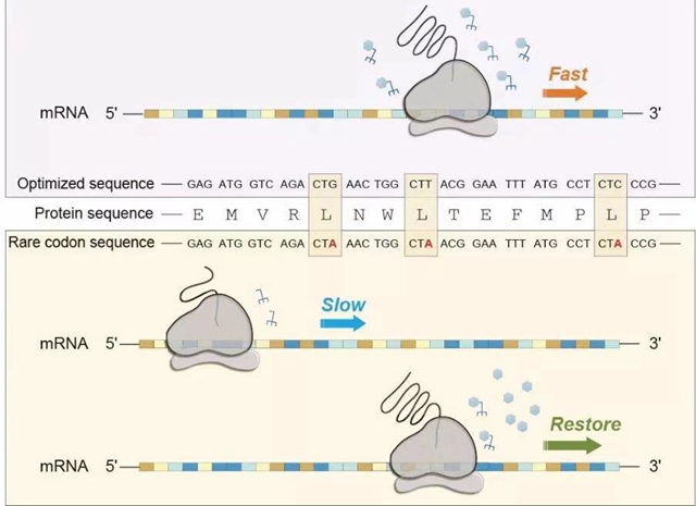 稀有密码子减缓翻译速率及恢复方式