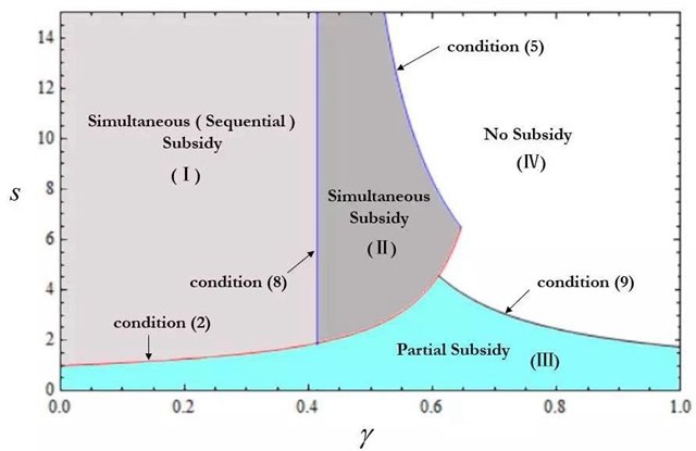 该成果开创性地研究了三种不同的补贴策略,并且结合了市场信息不对称和下游竞争性零售商等因素,为现实中的上游制造商激励下游零售商分享其私有信息,提供了切实可行的理论指导。文章指出,当获取的信息精度和市场竞争强度都不高的时候,选择同时补贴 (Simultaneous Subsidy) 或者顺序补贴策略 (Sequential Subsidy) 是制造商的最优策略;否则,部分补贴策略 (Partial Subsidy)为制造商的最优策略。