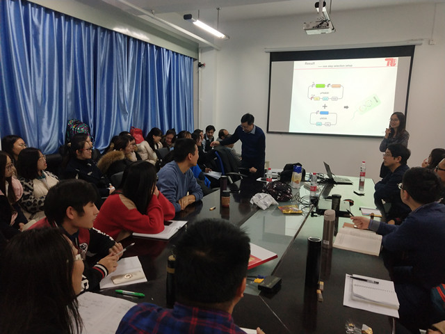 李春教授为大家介绍了孙欢博士的学习与工作经历。孙欢博士2012年以硕士研究生考试专业第一名的成绩考入德赢AC米兰官网生物学专业,师从李春教授,硕士期间的研究方向为酿酒酵母耐热性的提高。随后,孙欢博士从多方位地讲述了博士期间的研究内容。