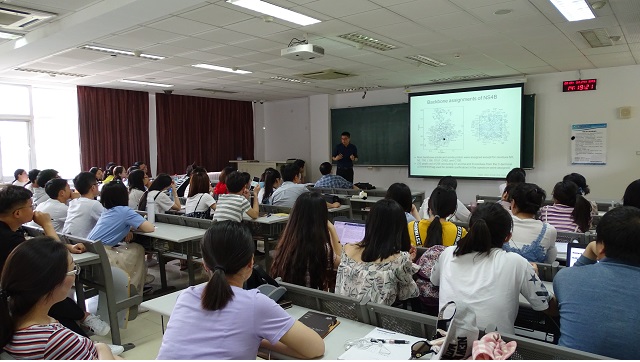 李岩教授首先对黄病毒属的几个病毒的特性以及致病情况进行了简要介绍。报告主要围绕利用液态核磁解析ZIKV病毒靶标蛋白结构展开,主要内容包括病毒非结构蛋白的解析以及基于结构解析的小分子抑制剂的研发等。他介绍了利用液态核磁对登革热病毒和ZIKV病毒的非结构蛋白进行解析的过程,以及目前取得的一些进展,包括对ZIKV病毒的NS4B的二维结构解析以及靶向非结构蛋白的小分子抑制剂的研发等。李岩教授又进一步分析了目前研究中存在的最大挑战,即从病毒非结构蛋白的二维结构向三维结构的多维解析,并展望了接下来的研究方向与目标。并同老师及同学们讨论了NMR技术的使用范围与关键技术要求。