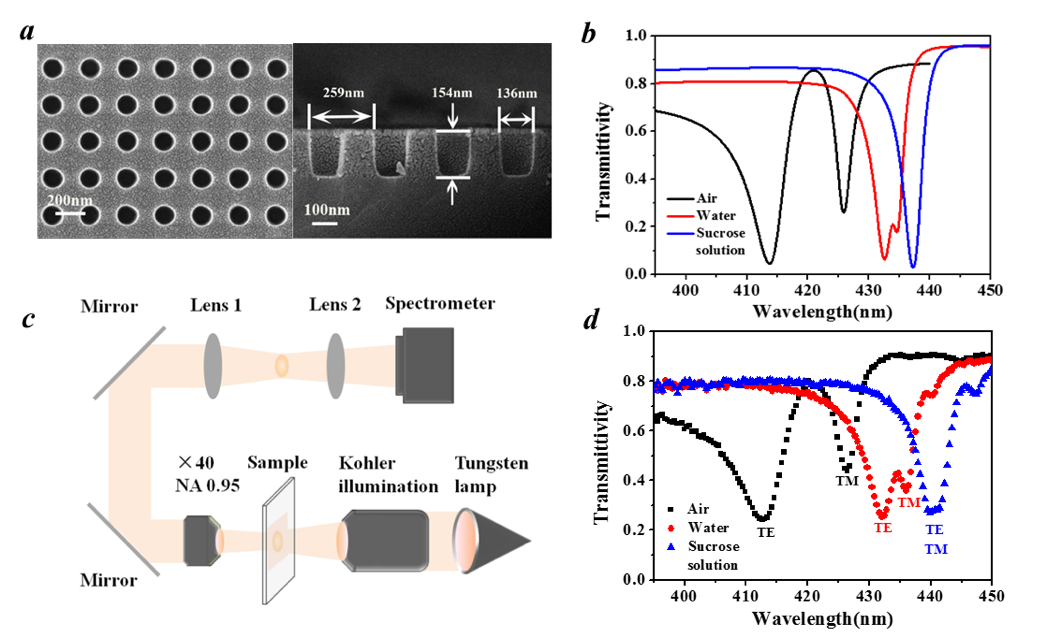 该工作显示,基于低损耗的光学微纳结构所产生的矢量奇异点能实现上述三方面的要求。奇异点(Exceptional Point)是非厄米系统中的能量简并点。与厄米系统相对应,非厄米系统是指体系的特征矩阵经过转置共轭操作之后不等于其本身。当系统处于奇异点时,系统多个本征态会塌缩成一个,使得本征态不再完备,由此会产生一些有趣的行为。最近人们已在不同的光学系统中设计出了外点,并证明其可以实现不同寻常的特性,如实现单模激光等。然而,目前人们所设计出的外点均是通过耦合具有相同偏振的模式获得的,并不能产生具有手征特性的光场。为了解决这一问题,该工作设计了光子晶体薄板结构,其能使两个偏振正交的布洛赫模式塌缩成奇异点。基于这一矢量奇异点,研究者成功调控出具有强手征特性的光场,并且对环境非常敏感。将其用于分子手性探测,具有探测灵敏度高,热效应小的优势。同时所设计的微纳结构只有100um*100um便于集成, 为生物芯片的研制提供了新途径。