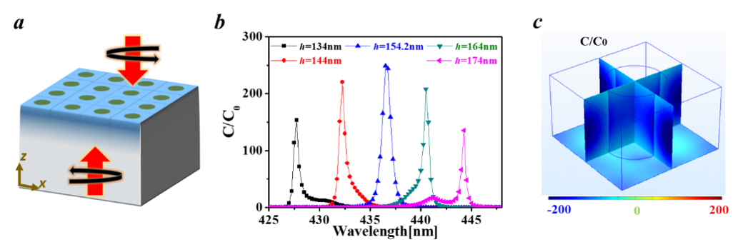 研究显示:基于微纳结构增强光与分子之间的手性相互作用,进而实现表面增强的分子手性探测是非常有前景的发展方向。为了实现最优的全光手性探测平台,所设计的微纳结构需要满足以下三个要求:1. 可以产生强且空间均匀分布的具有手征特性的光场,称其为超手征光场(Superchiral fields);2. 微纳结构本身不具有手性以避免其掩盖分手的手性信号;3. 微纳结构的光学损耗应尽可能的小,以避免热效应对分子构型的影响。同时满足这三方面的要求并不容易,因此,目前人们还没有设计出理想的微纳结构来实现高效的表面增强的分子手性探测方案。