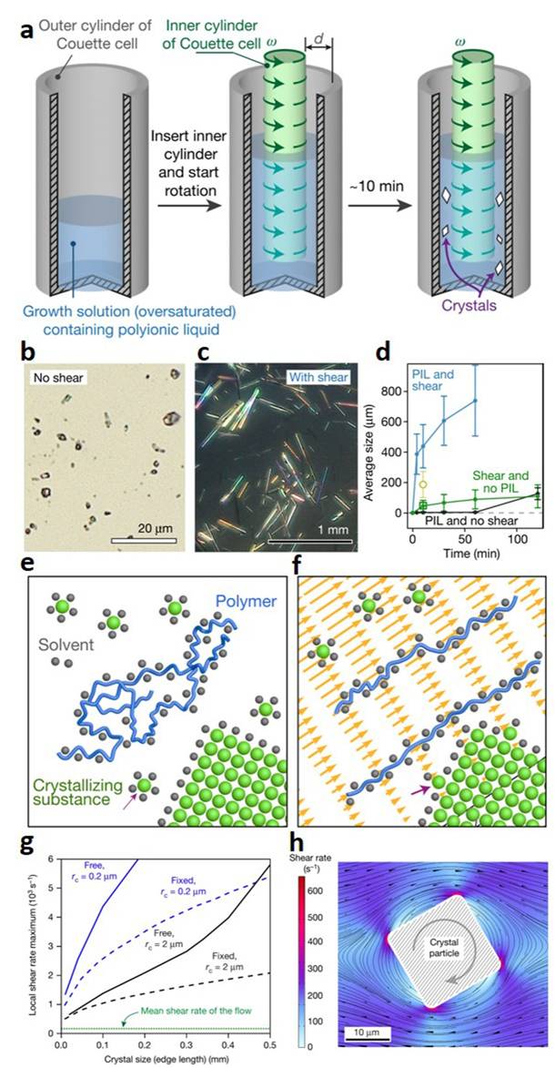 图:在聚离子液体存在下剪切应力促进均苯三甲酸晶体的生长