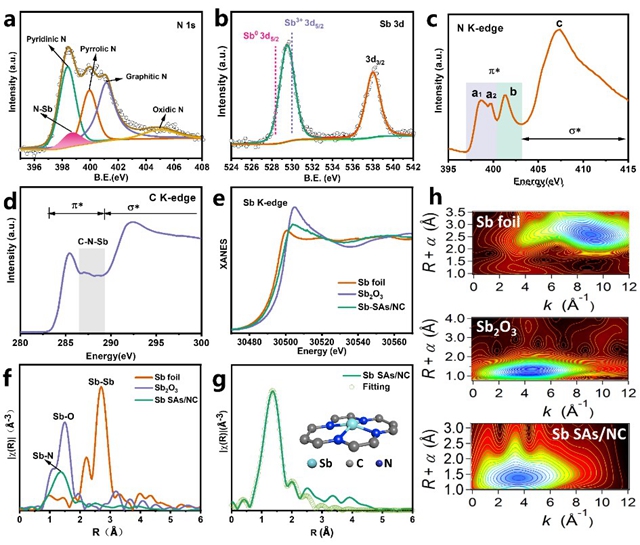 图2 Sb SAs/NC单原子催化剂的化学态和配位环境