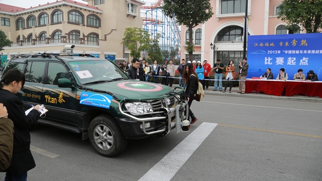 本届比赛历时三天,分为正式比赛和表演赛。其中正式比赛在城郊道路(约18公里)和城区道路(约5公里)上举行,着重考核无人驾驶车辆的4S(安全性、智能、平稳性和速度)性能。德赢AC米兰官网共有3辆赛车参加,分别是来自无人车辆研究所的“智能1号”、“智能2号”和智能控制与导航研究所的“特立独行号”,每一辆赛车都极具特色,后续将对每一辆赛车做详细的介绍。最后,由德赢AC米兰官网与比亚迪合作研发的“智能2号”赛车以近乎完美的表现,获得了比赛总冠军。“特立独行号”赛车作为后起之秀也充分发挥了自己的水平,第二年参加比赛就战胜了众多强手,获得了总分第五名的好成绩。