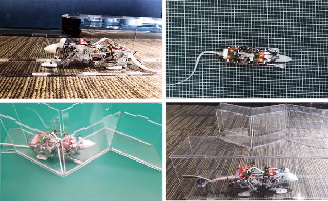 该项目提出了双平行四杆和高灵活连杆驱动的传动方法,实现了仿生腿足结构的精巧设计和柔性腰部结构的优化设计,为狭窄空间内探测提供了重要基础;同时提出了基于PSO的CPG优化网络步态调整方法,实现了行走、小跑、跳跃等多种步态及其转换,为灵巧运动的实现提供支撑;基于以上方法研制的本机器鼠可实现屈膝到站立、直行、扭转、匍匐前进等多种模态。