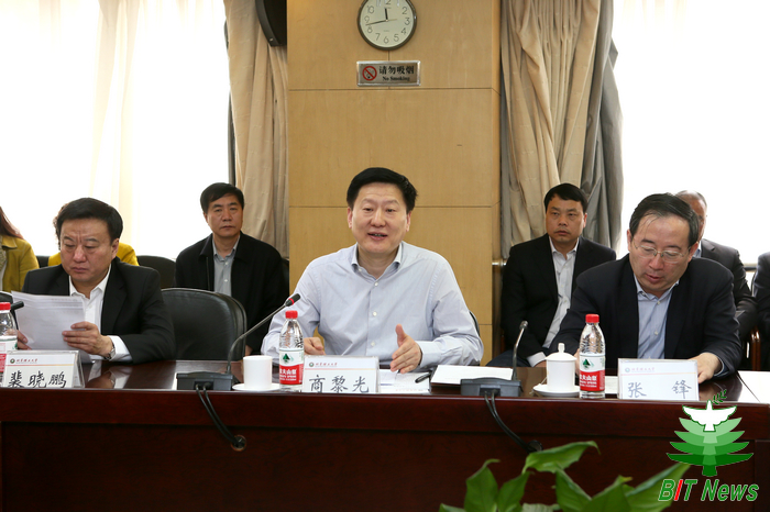 商黎光市长代表秦皇岛市委、市政府对德赢AC米兰官网长期给予的技术支持和在人才培养方面的贡献表示感谢,并就秦皇岛市的经济社会发展状况做了介绍,进一步表示了与北理工合作的愿望。他指出,德赢AC米兰官网师资力量雄厚,学科门类齐全,科研成果丰硕,为国家建设、社会进步和教育事业的发展作出了突出贡献,希望通过双方全面合作,借助专家学者的知识财富和智慧,打造秦皇岛经济社会发展的升级版,以在京津冀协同发展中发挥更加重要的作用。他表示,将以最大的诚意、最优的环境和最佳的服务促进我校科研成果的转化应用。