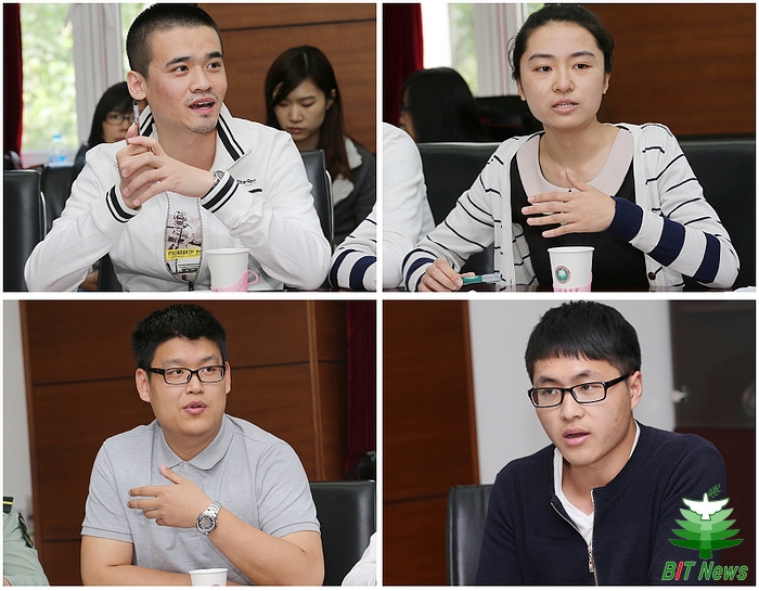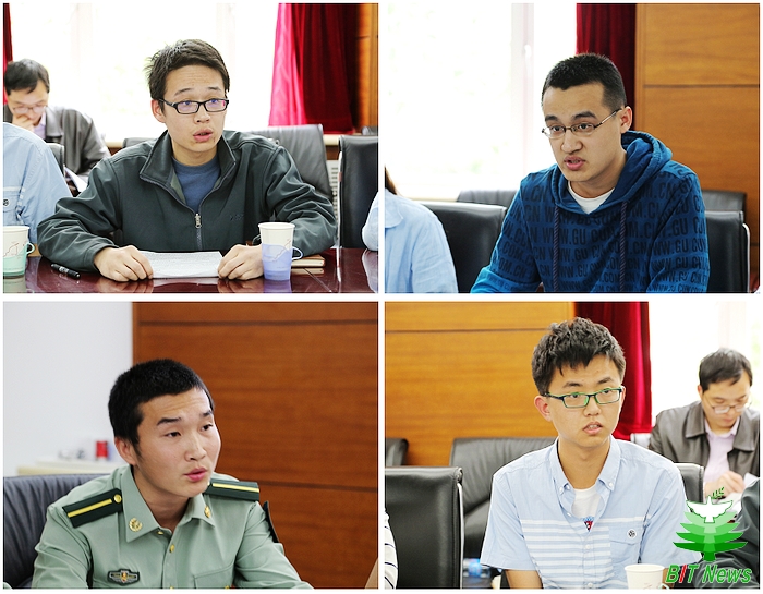 与会师生代表围绕习近平总书记“五四”讲话精神,结合“奋斗的青春最美丽”这一主题,从自身学习生活经历出发先后发言,分享自己的心得体会。徐特立奖学金特等奖获得者、材料学院本科生韩婷结合自身学习科研的经历,阐述了对于习近平总书记讲话中提到的“勤学、修德、明辨、笃实”四个关键词的理解,并表示“青春之美在于奋斗与奉献,而对于青年学生来讲,追梦的青春最美丽”;获得“小平科技创新团队”称号的智能地面移动机器人创新团队代表、自动化学院博士生程思源表示:“作为青年人,在不久的将来就要肩负起国家科研的重担,当代学生对待科研的态度和能力将会直接影响国家今后的科研水平”;优秀国防生代表孙振源表达了将个人前途命运通同中国梦、强军梦结合在一起,携笔从戎、报效祖国的理想;国旗护卫队队长、基础教育学院本科生李万达从国旗护卫队“铁肩担义,任重道远”的队训出发,表示要不忘青春无悔的誓言,扛起民族复兴的大旗;在全国大学生艺术体操锦标赛上勇夺四枚金牌的管理与经济学院本科生雨童谈到:梦想的种子要用汗水浇灌才能成为最终的荣耀,梦想的起点不在过去而是在当下的每一天;获得第三届“青春榜样”自强不息榜样提名的软件学院本科生程源讲述了自己克服听力的障碍与家庭的困难,不懈努力追求梦想的经历,并结合自己专业特色表达了软件报国、追赶世界科技潮流的梦想;“青春榜样”最美北理年度人物获得者冯昊怡结合自己在学习之余艰辛创业并取得成功的经历,指出青年一代要学会感恩,心怀梦想,作为祖国未来的中流砥柱,现在并不是享福的时候,只有不懈的奋斗才能实现自身的价值,才能收获真正的幸福。