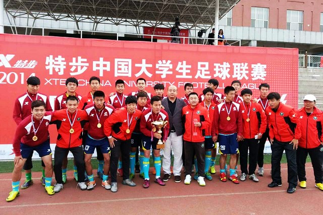 2013-2014赛季“特步”中国大学生足球联赛北方赛区决赛于5月11—18日在东北师范大学举行,我校足球队克服中甲和大学生联赛双线作战的困难,在九天打了八场比赛的情况下,勇夺“特步”中国大学生足球联赛北方赛区冠军,从而取得参加全国总决赛的资格。
