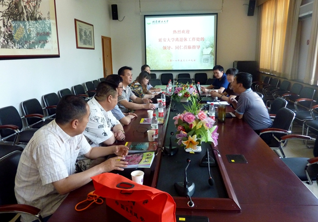 延安大学与我校历史渊源颇深,是我校深入对口支援的西部高校,刘川处长对延安大学离退休工作处一行的到来表示欢迎,希望通过相互交流共同推进两校离退休工作的开展。