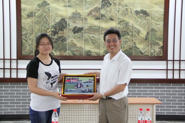 讲座结束后,机械与车辆学院学生代表向闫建来赠送了以北理工历代方程式赛车为题材制作的相框留念,表达对闫老师的崇高敬意和感谢。