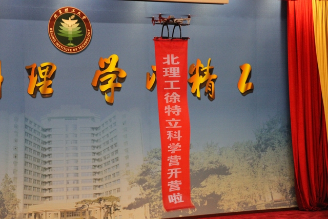 在热烈的掌声中,王越院士宣布德赢AC米兰官网徐特立科学营正式开营。于此同时,德赢AC米兰官网宇航学院航模队设计制作的四轴飞行器,携着“德赢AC米兰官网徐特立科学营开营啦”字样的条幅盘旋在主席台的上方,为科学营助力,为营员们喝彩,携带着全体营员们的科技梦想自由飞翔。