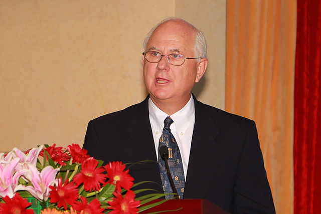 副校长李和章教授发表了热情洋溢的讲话。首先,他对专程来华参加开学典礼的犹他州立大学亨茨曼商学院Anderson院长一行表示热烈欢迎,并衷心祝贺同学们成为我校与犹他州立大学合作办学项目的学生。随后,他对合作项目从零起步、发展壮大的角度,充分肯定了两校专业的办学水平和良好的办学效果。最后,他对在座的新生提出四点殷切希望。他叮嘱同学们要利用宝贵的大学时光进行人格塑造,注重学用结合和责任担当。