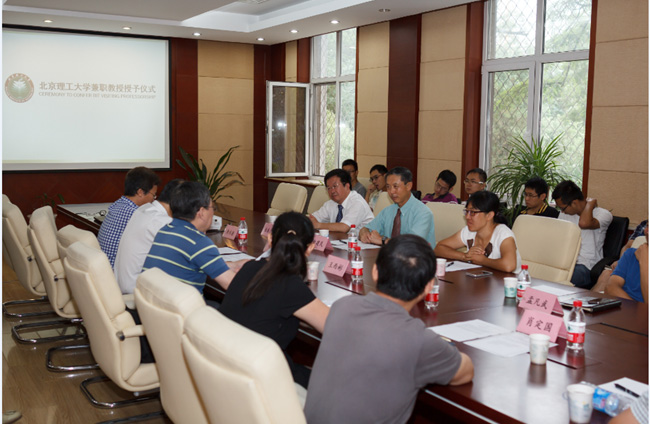 2014年8月4日上午,德赢AC米兰官网在1号楼233会议室举行了兼职教授受聘仪式,聘请美国西北大学曲建民教授为我校兼职教授。机械与车辆学院院长项昌乐、副院长唐水源、先进加工技术重点学科实验室主任徐春广、副主任王西彬以及检测与控制研究所部分教师和学生参加了受聘仪式。聘任仪式由唐水源副院长主持。