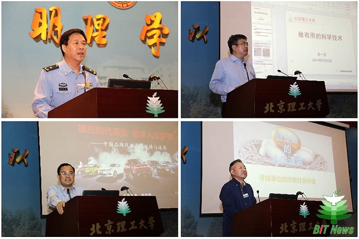 在主论坛“人生追求和社会价值”上,朱和平少将深情回忆了与爷爷开国元勋朱德总司令的点滴生活,阐述了心中坚定不移的科技强国的梦想,在这条追梦的道路上,他始终葆有强大的精神动力,始终坚持持续的创新驱动。朱将军告诉每一位理工学子,要牢记母校从宝塔山下、延河岸边一路走来的光荣传统,要牢记一代又一代理工人对强国强军的不懈追求和无悔付出,这是北理工永远不变的魂!吴一戎校友向大家展示了前沿科学的独特魅力,讲述了他在科研与学术道路上的心得,即“做有用的科研,要把学术和应用结合到一起,只有这样才能真正做到为社会创造价值”。朱华荣校友做了“顺应时代潮流,追求人生梦想”的主题演讲,阐述了一个中国品牌汽车人的坚持与追求。他结合多年来的工作经历,告诫在校学子,人生就是一场长跑,赢得人生长跑,需要六大合力:体力、毅力、学习力、创造力、凝聚力、免疫力,并激励大家,只要向着目标不断前进,梦想其实很近!九城网络技术集团有限公司董事长兼CEO王双校友向大家展示了一个创业者的梦想与追求。他与大家分享了充满了挑战、艰辛却又包含收获与喜悦的创业历程,告诫大家要定位自己、剖析自己、认识自己,追随你自己的内心,忠于你自己的本性,对准属于自己的方向,贡献出自己独特的价值。