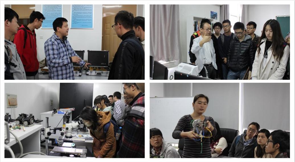 专业讲座结束后,2013级全体同学在2012级本科生志愿者的引导下参观了学院的各研究所实验室。各研究所的指导教师分别就本研究所的研究方向、学生培养和就业前景等几个方面向学生们做了详尽的介绍,展示了实验室的专业器材和设备,同时也就学生们所关心的问题进行了解答。