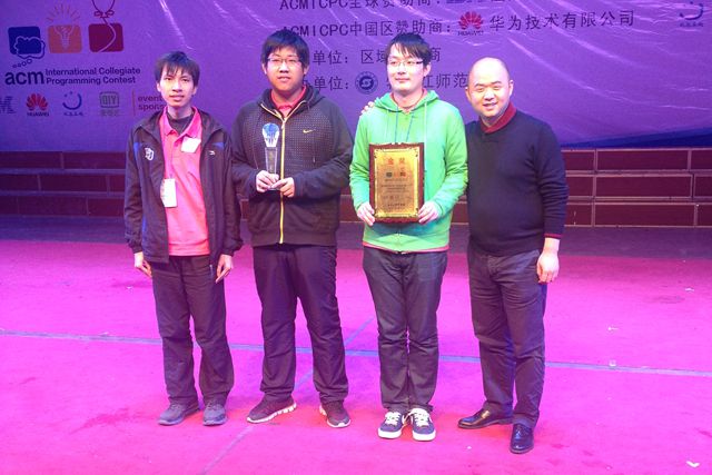 2014年10月11日-12日第39届ACM国际大学生程序设计竞赛亚洲区域赛(牡丹江)在牡丹江师范学院举行,本次竞赛共有来自全国各高校的150余支参赛队伍、近500名参赛选手参加。由德赢AC米兰官网计算机学院傅天晓、易毅和软件学院苏琛组成的BIT_illusion队经过5小时的奋战,最终排名总分第三位,获得金牌组季军。继2013年首次取得金牌组季军后,再次创造了我校的最好成绩。