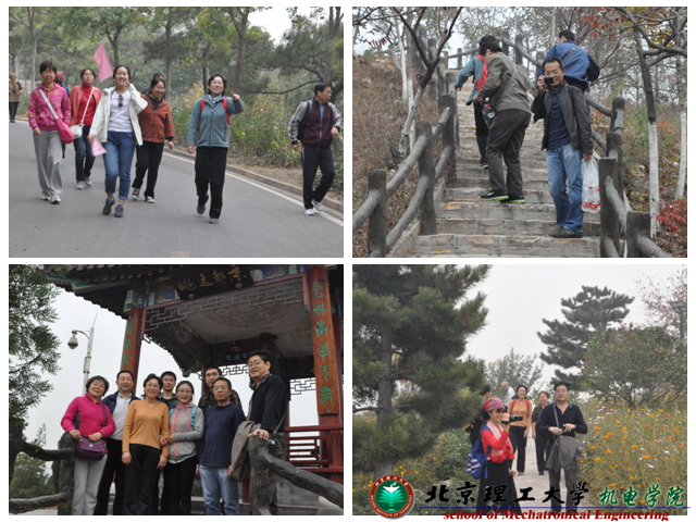 学院工会积极提倡和大力促进广大教职工参加各种类型的体育锻炼,提高教职工的身心健康指数,弘扬团结友爱、互助协作的团队精神和鼓励全体教职工将永不言弃的坚韧意志投入到科研教学中。报名参加本次活动的有80余人,党政领导带头践行党的群众教育路线,有年近古稀的教授,也有意气风发的青年教师,还有部分家属陪同,从北宫森林公园入园,沿途经过了华林园、小动物园、彩云台、望京亭、空中花园、地震断裂带等景区、最后登顶在狼坡顶。一路走来,沿途各种山间野花、各色彩叶相映成趣。全程往返约五公里,约10000余步。