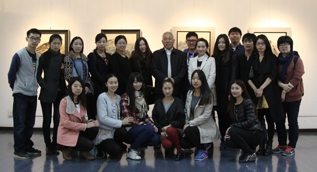 校副书记、副校长李和章与全体绘画学科方向的同学们交流并合影