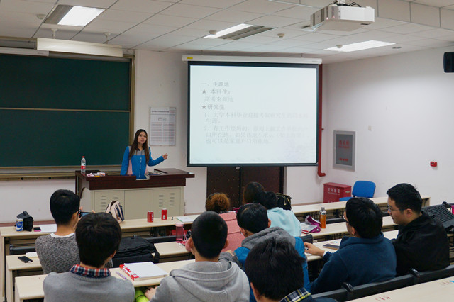 在讲座正式开始之前,林老师根据最新的数据统计,详细地向毕业生们解读了当前的就业形势。林老师指出当前就业形势的五个特点,分别是供需严重不平衡、需求结构不平衡、留京难度一再加大、留沪打分制度审批更严、以及最重要的体制内需求严重萎缩,另外还出现了新特点即招聘的“短平快”。林老师的分析让即将毕业的同学们认清了形势的严峻性,为大家敲响了警钟。