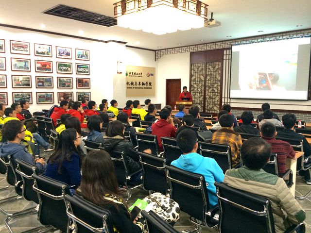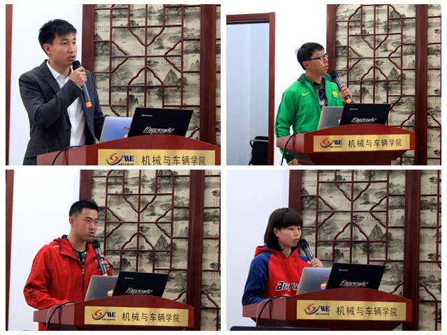 机械与车辆学院团委书记王泰鹏结合机械创新创业实践中心的总体工作向与会师生做了总结。以方程式赛车工作室为代表的各团队以赛事为牵引,特别注重做好基础课题研究和文化传播活动,实现了学生科技创新活动培养人的根本目标,同时产生了一系列学术成果、获奖荣誉和创业案例。截至10月底,2014年学院学生参与创新实践活动达500余人,开展各类课题研究129项,获得省部级以上奖项61项、172人次,本科生发表论文、申请专利30篇。