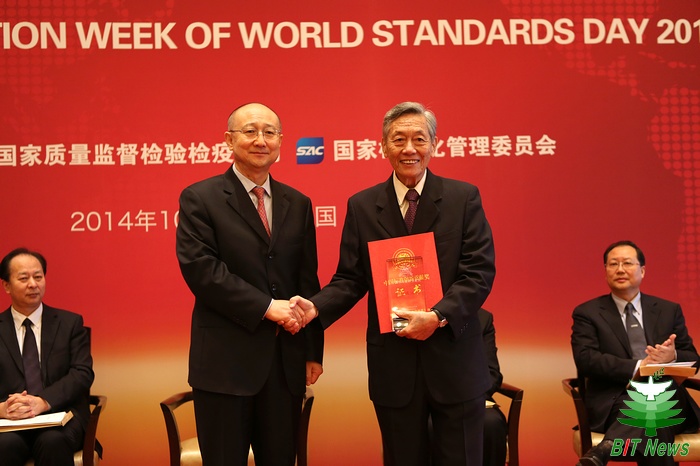 今年10月14日是世界标准日,为表彰郎志正教授近50年对中国标准化理论与实践的贡献,国家质检总局和国家标准化委员会给郎教授颁发了国家政府奖项—中国标准创新贡献终身成就奖。