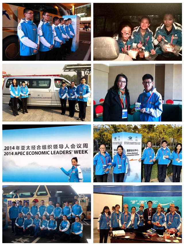 随着2014年APEC领导人会议周落下帷幕,我校108名志愿者圆满完成了APEC志愿服务工作。APEC领导人会议周期间,我校志愿者从11月1日首批上岗到13日最后一批撤岗,共计上岗服务915人次,累计服务时间10367小时,志愿者服务岗位主要集中在机场交通组跟车语言服务岗、国家会议中心组主咨询台岗和交通跟车语言服务岗、励骏酒店咨询台岗、外交部志愿者之家等几类岗位。