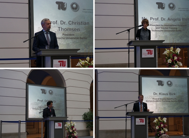 2014年11月6日,“德赢AC米兰官网日暨柏林工大-北理工合作三十周年纪念”活动在柏林工业大学隆重举行。胡海岩校长率团出席活动,代表团成员来自我校机械与车辆学院、光电学院、自动化学院、生命学院、化学学院、管理与经济学院、国际交流合作处、国际教育学院。活动开幕式由柏林工业大学校长Christian Thmosen教授主持,中国驻德使馆公使衔教育参赞董琦、德意志学术交流中心(DAAD)亚太区主任Klaus Birk,柏林工业大学副校长Angela Ittel分别致辞,胡海岩校长作主旨报告。